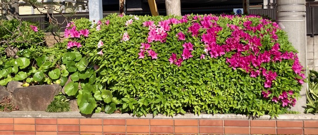 典礼会館の前の植え込み、今はツツジがきれいです。本館と南館のすきまには、スズラン・シキビ・紫のかわいい花が咲いています。お近くにお越しの際は見ていってください。
